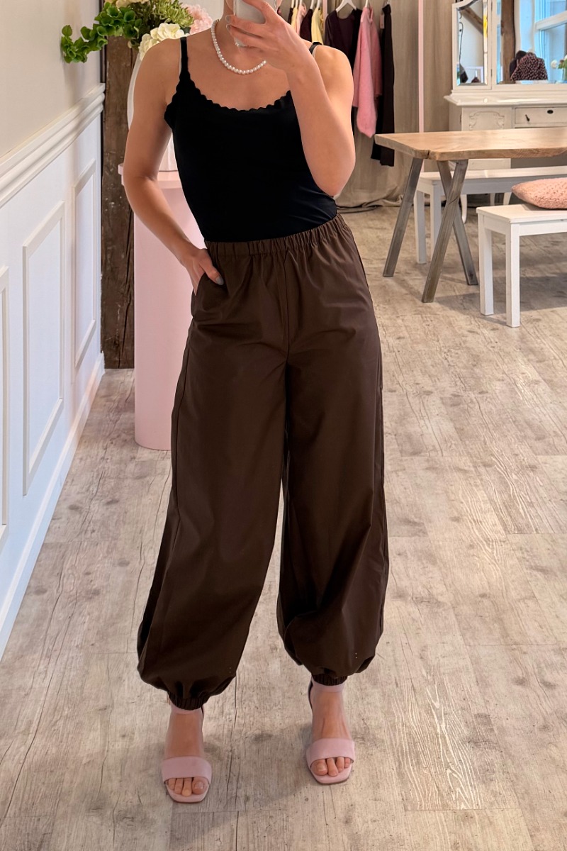 Her er et par nemme bukser fra A-View i denne smukke sandfarvet. Den er med balloneffekt og derfor også med på trenden som er lige nu. Den er lette i kvaliteten og nemme at bruge til hverdag eller til fest med en stilet.Â