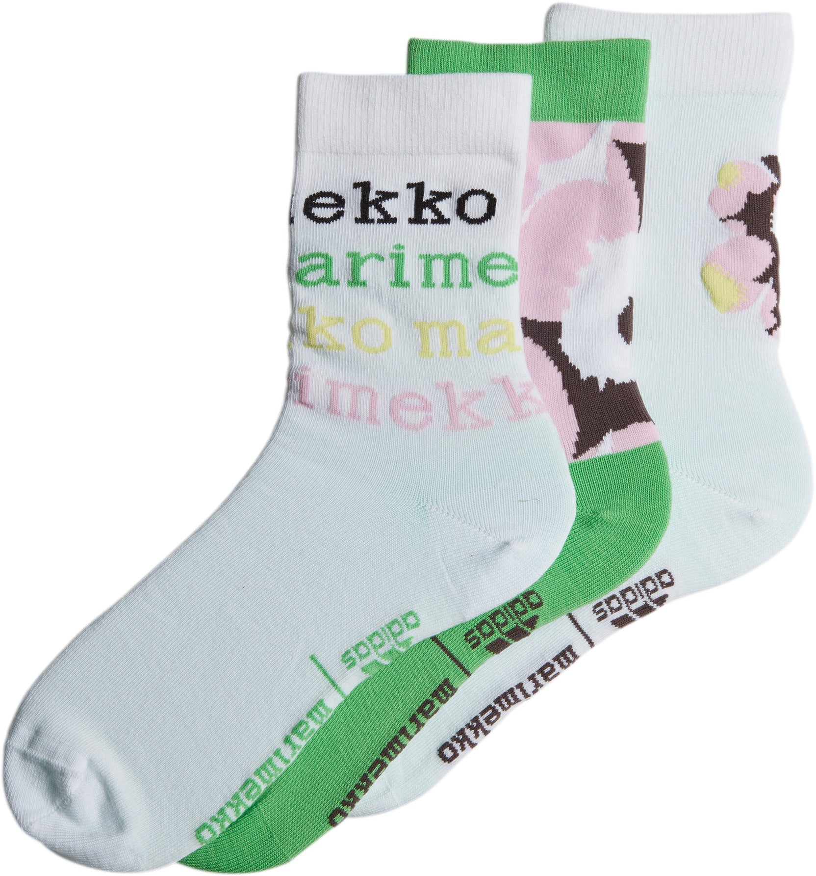 En af de grundlæggende overbevisninger hos det finske designhus Marimekko er, at kvinder skal kunne løbe i kjole, hvis de ønsker det. På samme måde kan du frit bære disse adidas-sokker til juniorer, ja, hvor som helst du vil. De er en del af et samarbejde, der fejrer 70 års kvindelig empowerment. Hver pakke kommer med tre forskellige par, der giver dig et forår i dine skridt, uanset hvor du går. Dette produkt er fremstillet af en række genbrugsmaterialer med mindst 60 % genbrugsmateriale og repræsenterer blot en af vores løsninger til at hjælpe med at gøre en ende på plastikaffaldet.