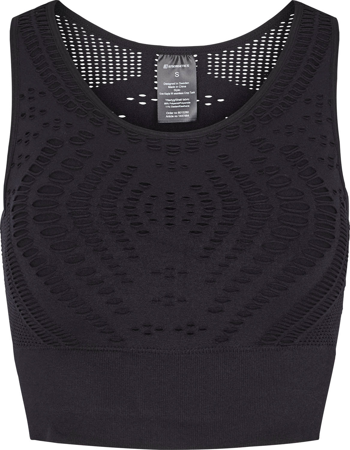 Denne Energetics Crop top er fremstillet i et fantastisk strækbart materiale, der skaber en tæt, støttende pasform, fyldt med perforeringer der ikke kun giver et ekstraordinært look, men øger samtidig også åndbarheden. Toppen er med skåle, der kan tages ud og fuldendes med en solid, bred elastik i bunden der sikrer pasformen og øger støtten.