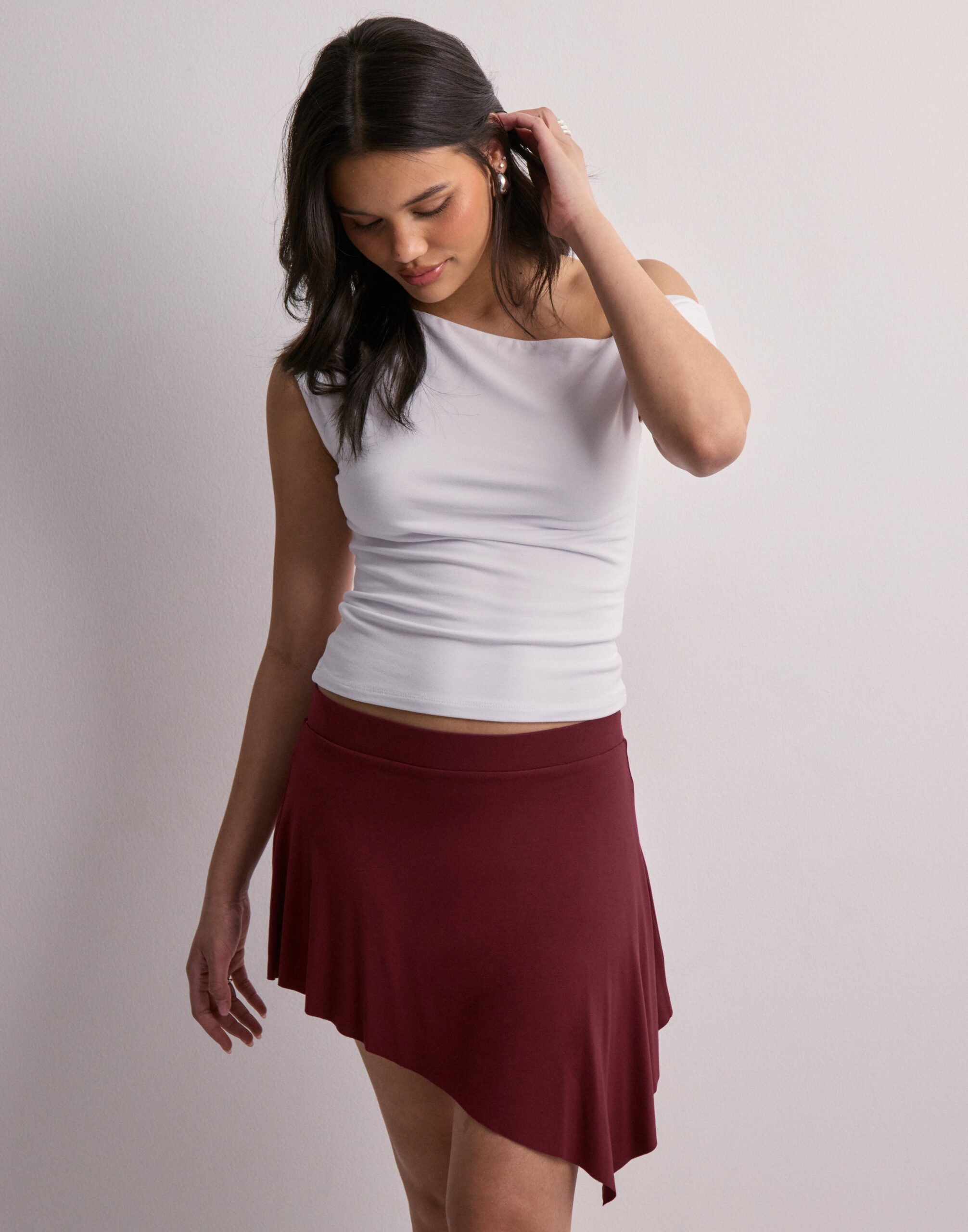 Nederdel fra Nelly Elastisk, blødt materiale Kort model Asymmetrisk design Elastikrem ved taljen