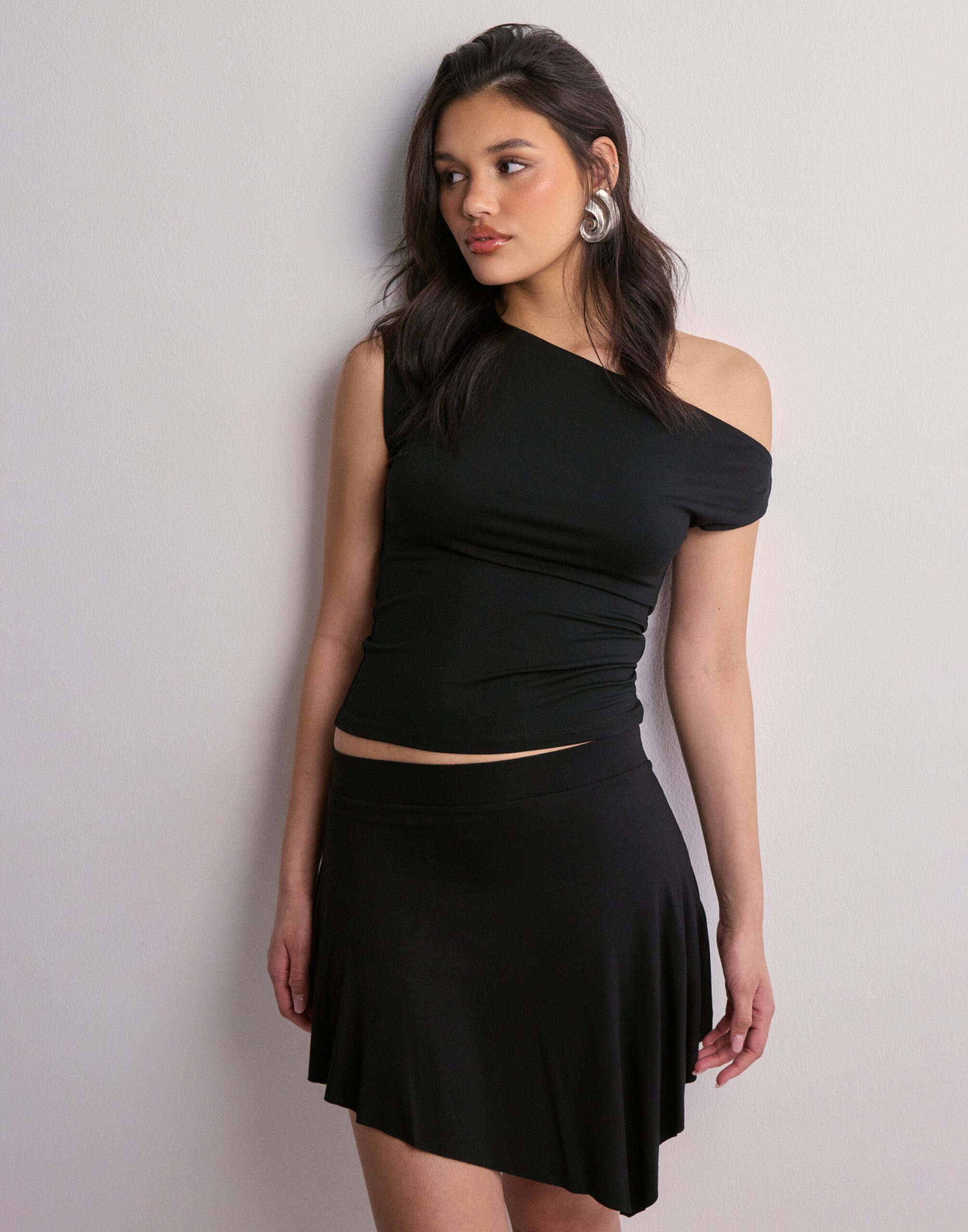 Nederdel fra Nelly Elastisk, blødt materiale Kort model Asymmetrisk design Elastikrem ved taljen