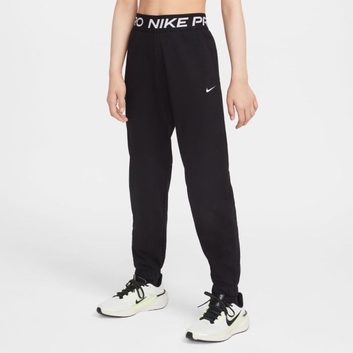 Nike Junior Pro Fleece Dri-FIT Joggers er designet til unge atleter, der ønsker en kombination af varme, komfort og bevægelsesfrihed. Det bløde fleece-materiale giver en behagelig følelse mod huden, mens svedtransporterende Dri-FIT-teknologi hjælper med at holde kroppen tør under aktivitet. Den elastiske talje med justerbar snøre sikrer en personlig pasform, og ribkanter ved anklerne holder bukserne på plads. Perfekte til både sport og afslapning.