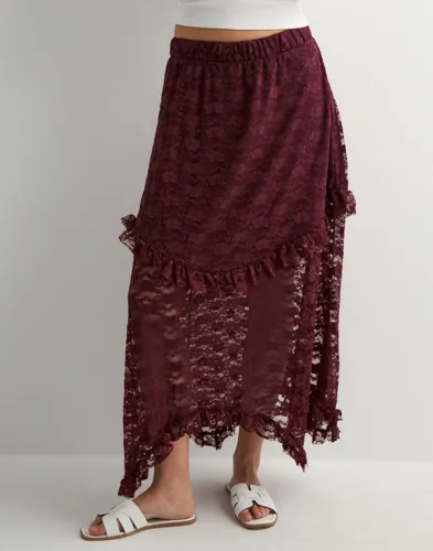 Blondenederdel fra Only Midi længde Elastik i taljen Flæsedetaljer