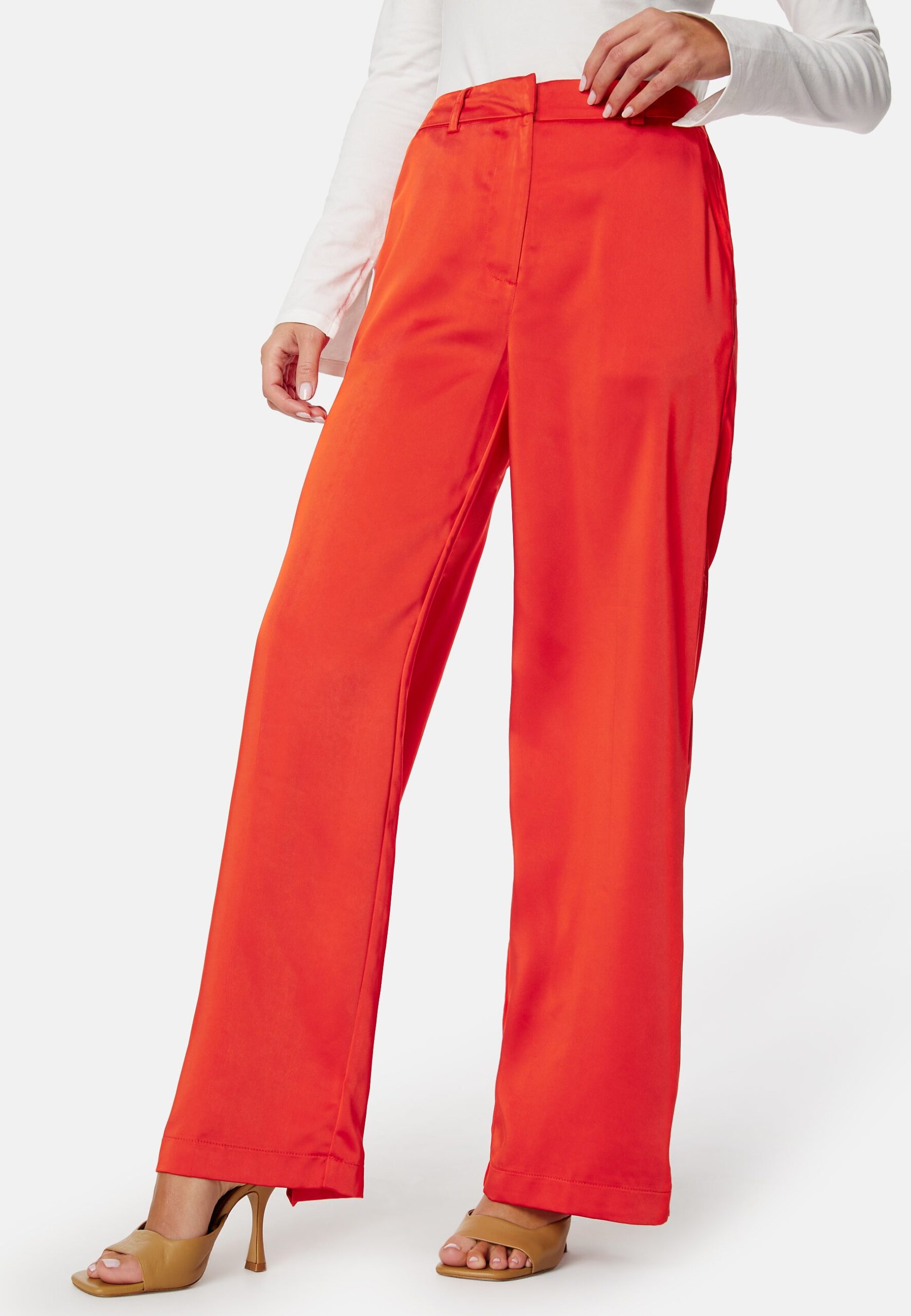 Fine bukser fra Y.A.S. – Stiv, vævet kvalitet – Gylp med lynlås – Høj talje – Bred pasform – Snydelommer bagpå – To forlommer – Længde ved indersiden af benene: 77,5 cm i størrelse S
